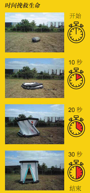 - 用气缸或鼓风机可在几秒内快速架起帐篷