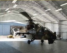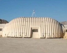 充气式F-16 战斗机特制机库具备有史以来最大的充气双臂式帐篷之一,用于起飞前最后检查。
